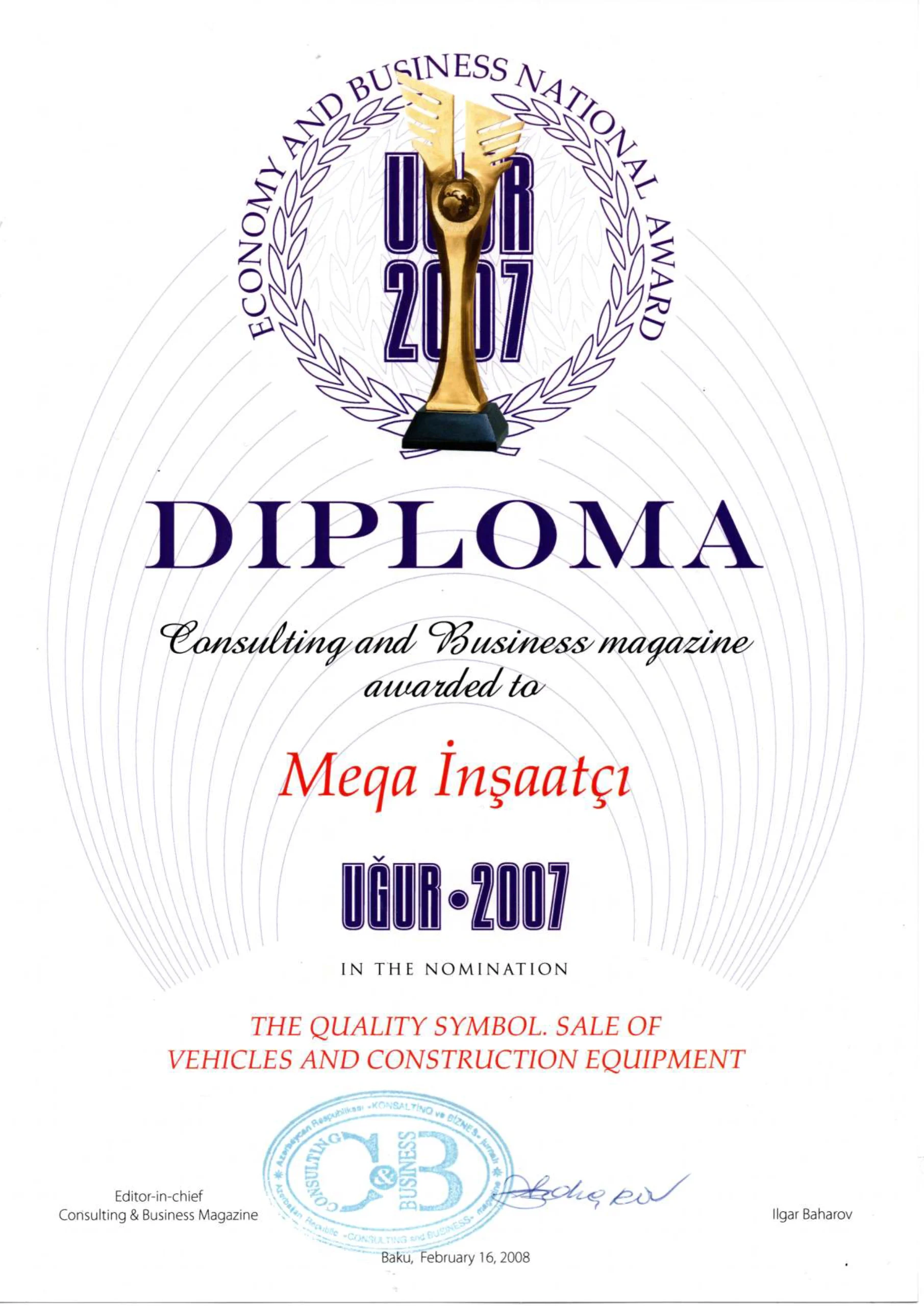MEGA Holding founded “Yeni Inshaat” JSC by continuing the introduction of highly qualified construction structures onto the market. The “MEQA INSHAATCHI” company appeared in the same year and gained its own niche as a supplier for structural engineering. In the meantime, the company “Yol Servis” was founded as a reflection of the holding’s interests in the sphere of road infrastructure. “Yol Servis” is specialized in the production and laying of asphalt, particularly in the regions of Azerbaijan.